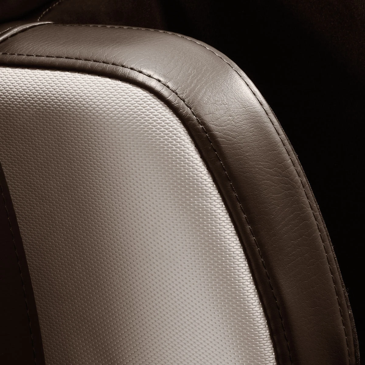 The comfortable massage chair is covered with pleasant-to-the-touch imitation leather in shades of dark brown. The use of such material makes it highly resistant to moisture and easy to clean. The combination of structured material in beige and imitation leather in brown tones on the outer parts of the chair gives the product a highly original and elegant appearance. Carefully made hems give it a stylish look, and the solid construction guarantees long use. A compact model with an aesthetic finish and classic colours will perfectly fit into any interior. The Sakura 305 massage chair is a great way to relax at any time, especially after an exhausting day or a hard workout.