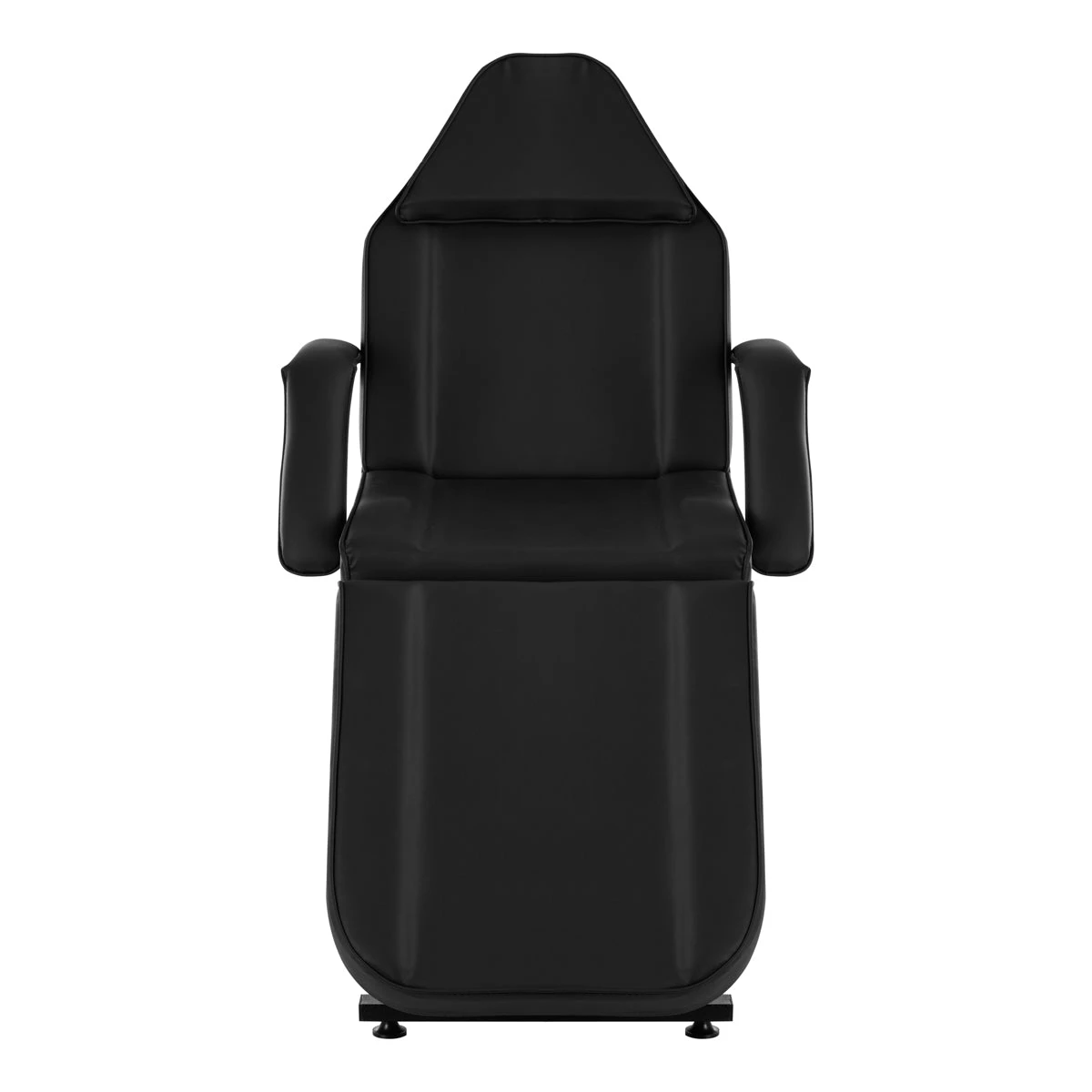 The hole in the headrest, hidden under a properly profiled pillow, makes the chair perfect for both face and back treatments. Stable armrests guarantee the user adequate support. These elements, which are divided in half, are movable, so they fit well when changing the position of the backrest, and additionally they can be easily removed.
