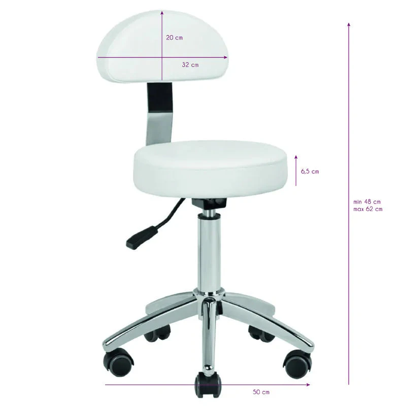 The practical cosmetic stool AM-304 allows you to comfortably perform all kinds of cosmetic procedures. Mounted on a durable hydraulic lift, it allows you to adjust the height at any time. The five-star base ensures stability, and rubberized wheels make it easy-to-move the furniture, which ensures comfortable work. The backrest can also be easily removed for freedom of movement. These solutions allow you to adjust the stool to suit your needs and the procedure being performed at a given moment. The simple design and classic colors make it fit perfectly into any interior. EU PLUG