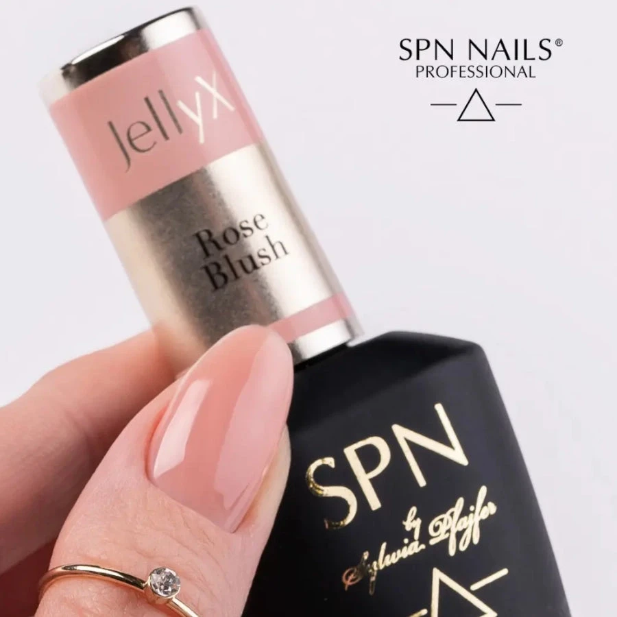 A revolution in nail gel application! JellyX gel in a bottle from SPN Nails! JellyX Rose Blush is a cover gel in a delicate shade of powder pink. JellyX means durability, comfort and ease of work for every nail tech! It is a flexible, medium-thick gel, closed in a convenient bottle with a brush.