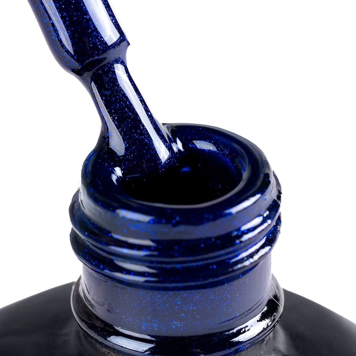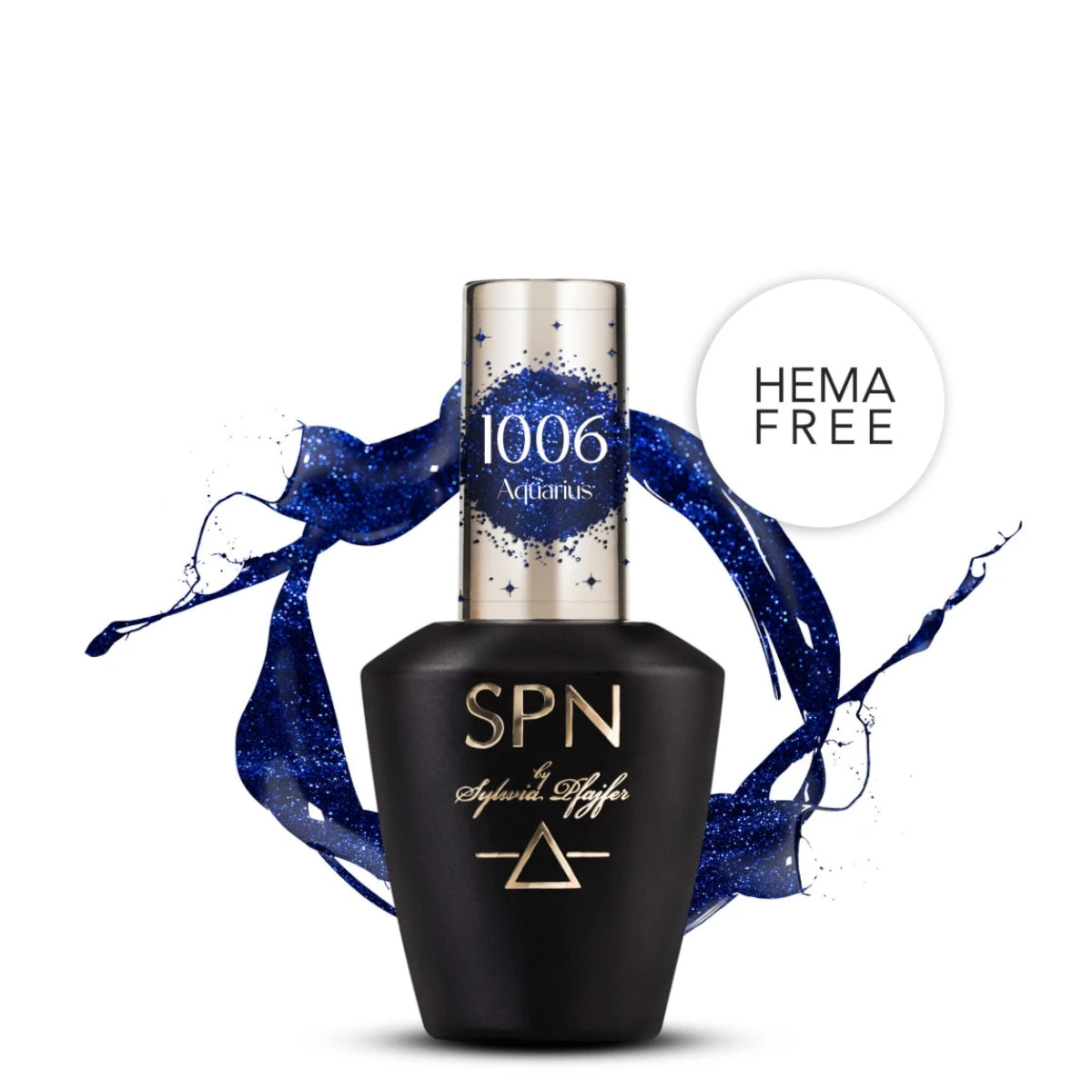 SPN Nails hybrid varnish in color 1006 is a navy blue hybrid varnish with glitter from the Cosmo SPN Nails collection. Do you look at shooting stars at night? We do not promise that your wishes will come true – unless you dream of an intensely shiny mani. The 1006 Aquarius hybrid varnish spreads a starry glow on the nails, and the spectacularly sparkling particles add a cosmic glow to the navy blue hybrid nails.