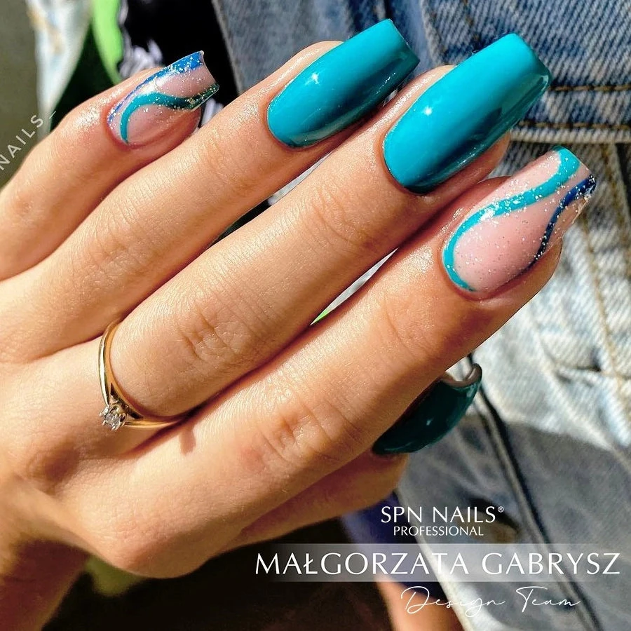 SPN Nails hybrid polish in 519 Caribbean Dream color is a beautiful turquoise shade that emphasizes tan and looks beautiful in summer stylizations. The inspiration for its creation was the delightful, deep color of the Caribbean sea. The varnish covers perfectly.