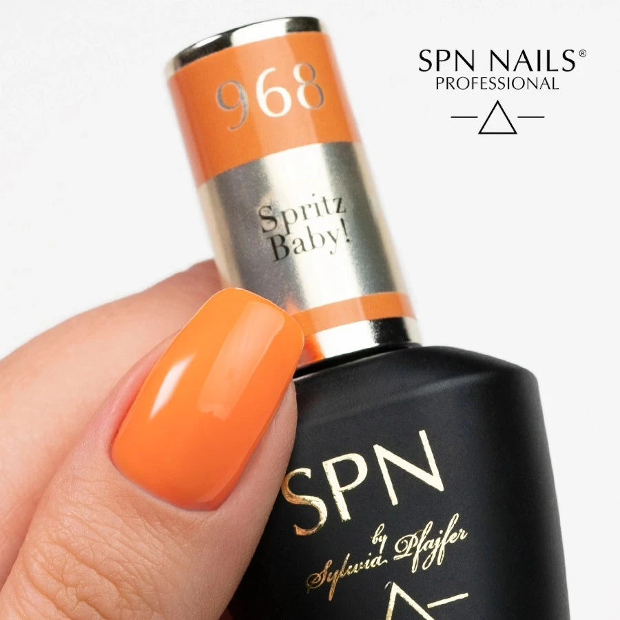 SPN Nails hybrid varnish in 968 Spritz Baby color! is a warm orange color from the Fancy collection. Are you going to travel to the Italian Riviera? Don’t forget to style your nails with 968 Spritz Baby! The warm orange color reminds you of romantic walks at sunset. Give yourself a citrus freshness with Spritz Baby hybrid varnish!