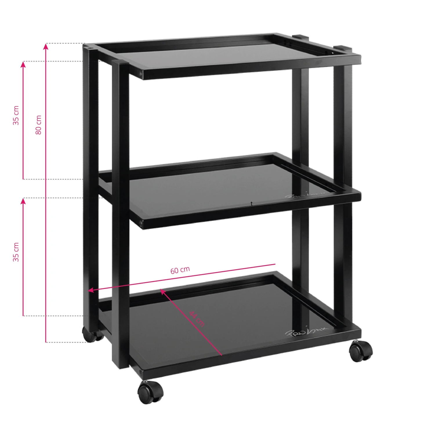 PRO INK 1041 ASSISTOR for storing tattoo equipment. Thanks to a solid steel structure, it guarantees long-term durability, and the glass table top will allow you to keep clean when working with pigments. Three glass shelves will accommodate everything you need during the session. It has a lamp holder.