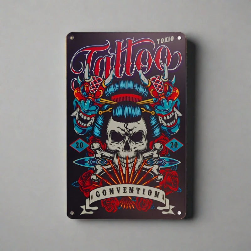 Transform your tattoo studio into a stylish haven with our Tattoo Studio Decorative Board TA144 ‘Tokio Tattoo Convention’. Made from a thin aluminium sheet, this board features graphics applied using advanced sublimation methods for a high-quality finish. Whether you’re looking to add a touch of personality to your studio or showcase your love for tattoo conventions, this decorative board is the perfect choice.