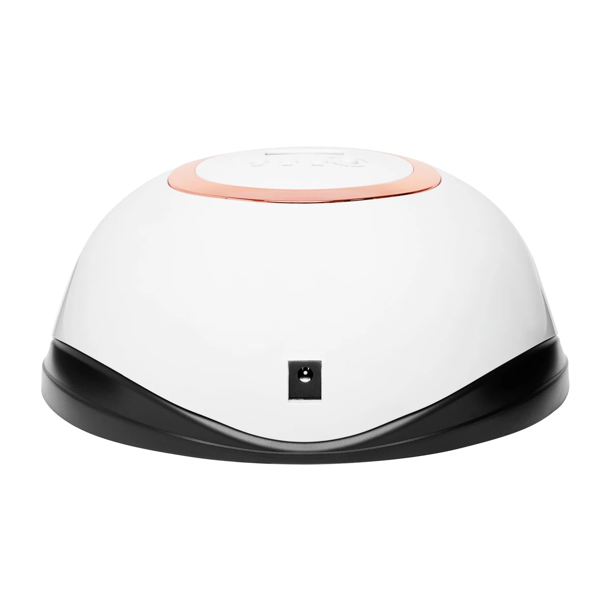 The lamp is characterized by a power of 168 W, which consists of as many as 42 properly arranged LEDs (without the so-called “dead zone”), which ensure perfect curing of gels and hybrid varnishes. The V1 model has a closed shape, the so-called booth, which allows for more accurate and even curing of nail styling. The Dual LED technology used results in the fact that the diodes emit light of two wavelengths, not tiring the eyes, providing a wide spectrum of action and quick fixation of the styling. The solutions used make the lamp properly cure even the most demanding nail polishes, reaching the most inaccessible areas on the nail plate.
