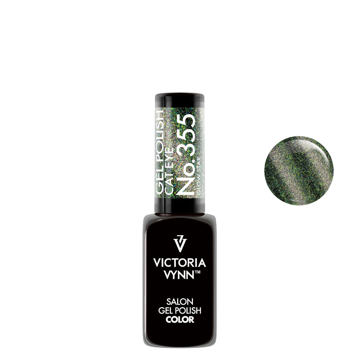 Gel Polish Hybrid 355 Glow Star from the Cat Eye collection by Victoria Vynn. Gel Polish Color for use in hybrid and Soak-Off systems. It guarantees fashionable styling with an elegant effect of magnetic dust, the distribution of which on the nail can be controlled using a magnet. at Eye Glow Star a versatile green resulting from the glow of stars shimmering in various ways. It looks great on both light and dark hybrids, achieving the effect of a cat’s eye or a shimmering mermaid.