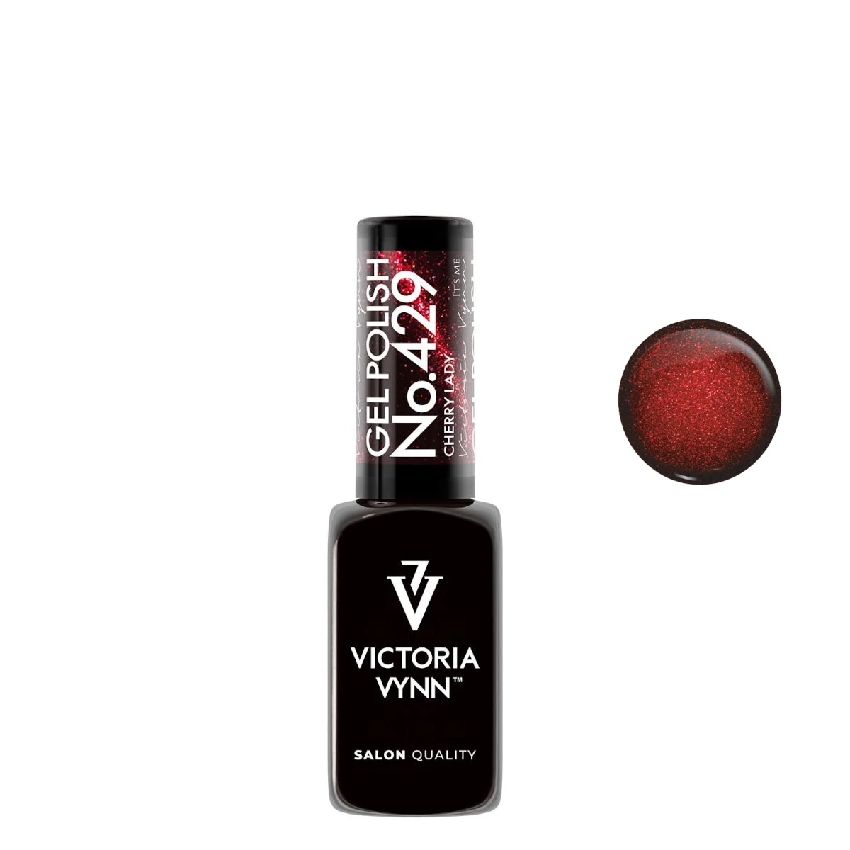 Gel Polish Hybrid 429 Cherry Lady by Victoria Vynn. Gel Polish Color to be used with hybrid and soak-off systems. An extremely charming shade of red pearl illuminated with a subtle particle. The magical glow of this styling will enchant everyone. Fits many styles. Range of over 400 colours from classics, glitters, pastels, neons and semi-transparent. Two thin layers provide ideal coverage and colour depth, medium thick consistency, and don’t drip, even when applied with a flat brush.